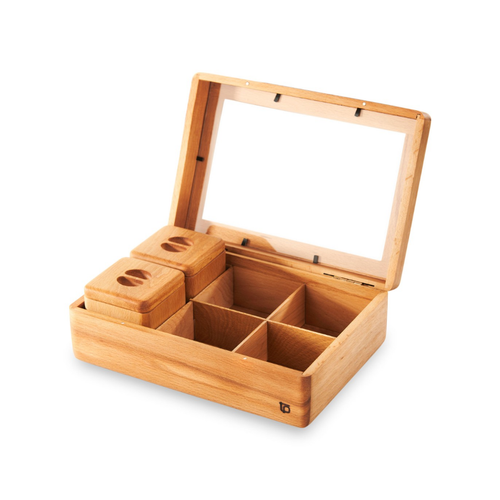 متحرک بودن مقسم ها : شکل چیدمان دیوایدرهای داخل جعبه را میتوانید به دلخواه خود تغییر دهید و این قابلیت به شما این امکان را می دهد که از این محصول بتوانید علاوه بر تی باکس به عنوان باکس چوبی ساده ، باکس گل ، جعبه هدیه ، جعبه نظم دهنده یا ارگانایزر هم بهره ببرید و همچنین با کمک مقسم های متغییر این جعبه چایی شما میتوانید علاوه بر تی بگ، برای نظم دادن به ساشه های نسکافه، مولتی کافه و علی کافه هم استفاده کنید .